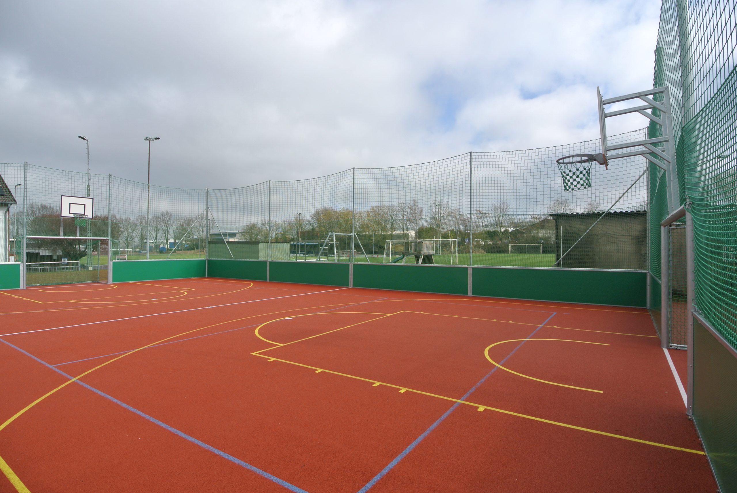Der Zugang zum Soccerplatz ist bzgl. der Zeiten beschränkt und er erfolgt über den Eingang zum Sportplatz von der Bahnhofstraße her. Auf der gegenüberliegenden Straßenseite kann gut geplarkt werden. Der Eintritt erfolgt über das ‚Tor‘ auf der Seite des Sporthauses über den ’schwarzen Riegel‘ (siehe Foto) Der Soccerplatz bietet beste Möglichketen für: